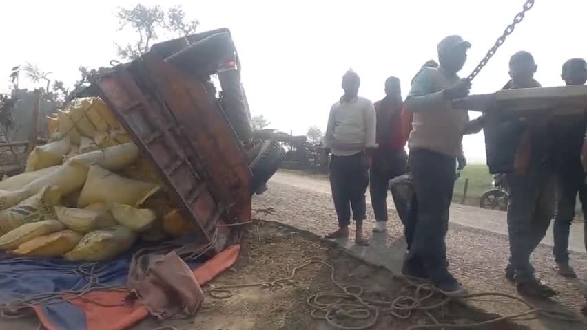 चौसा: खाद से लदा ट्रैक्टर जगदीशपुर और फुलौत बाजार के बीच एनएच 107 पर ट्रैक्टर का हक टूटने से पलट गया कोई जान माल का नुकसान नही