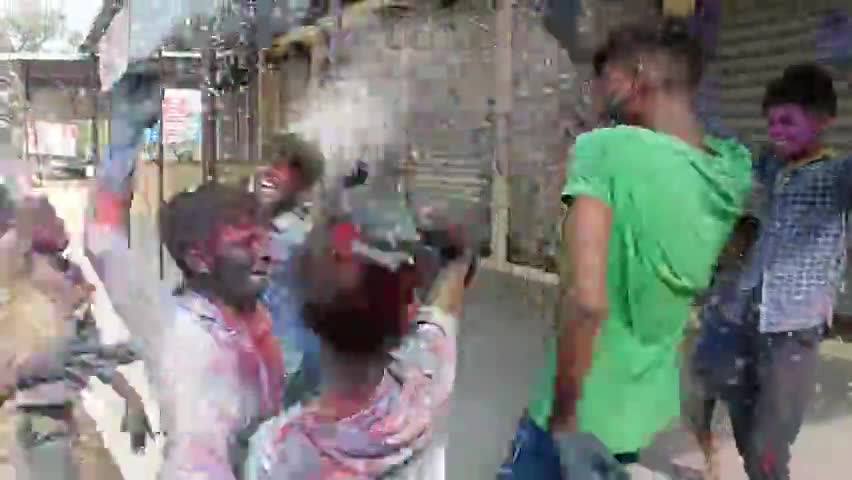 गोंडा: नगर पंचायत तरबगंज में रंगों का पर्व होली पर बच्चों ने एक दूसरे पर रंग गुलाल डाला और डांस किया। #रंगों_का_पर्व_होली