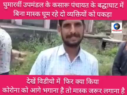 घुमारवीं: घुमारवीं उपमंडल के कसारू पंचायत के बद्धाघाट में बिना मास्क घूम रहे दो व्यक्तियों को पकड़ा देखें विडीयो में फिर क्या किय