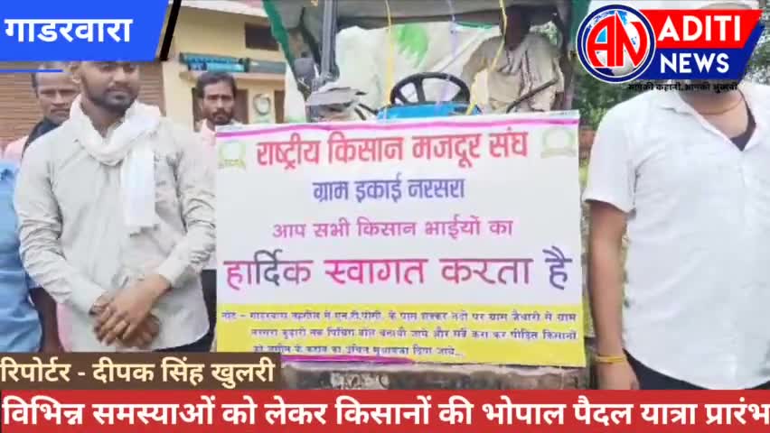 नरसिंहपुर: गाडरवारा के ककराघाट से विभिन्न समस्याओं को लेकर राष्ट्रीय किसान मजदूर संघ का का जत्था भोपाल के लिए पैदल रवाना हुआ