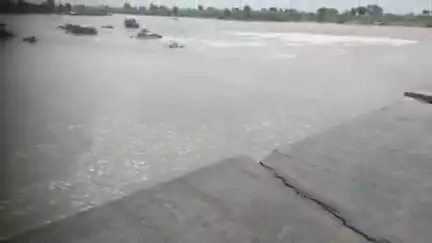 चहल गांव को जाने वाले गंभीर नदी की सपाट तेज बहाव के साथ हुई क्षतिग्रस्त पाचना से छोड़े गए पानी से नदी का बड़ा जलस्तर