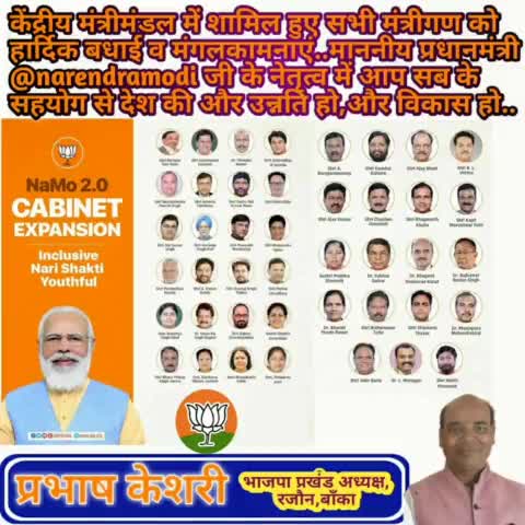 केंद्रीय मंत्रीमंडल में शामिल हुए सभी मंत्रीगण को हार्दिक बधाई व मंगलकामनाएं.. #cabinetministers