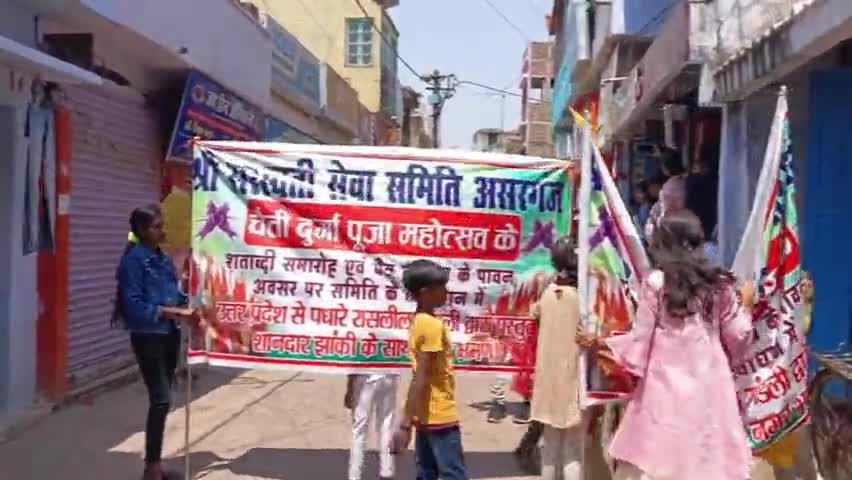 असरगंज: असरगंज के सरस्वती सेवा समिति के द्वारा चैती दुर्गा पूजा के शुभअवसर पर आज पूरे असरगंज में झाकी के साथ नगर भ्रमण कराया गया