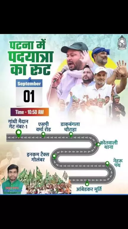पटना में पदयात्रा का रूट दिनांक 1 सितंबर 2025 गांधी मैदान गेट न0 1 से अम्बेडकर मूर्ति तक। #babulinayat #rjd #bihar
