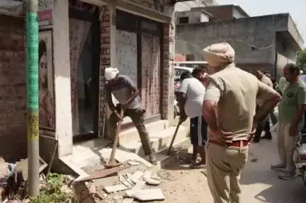 ਸੰਗਰੂਰ: ਅਹਿਮਦਗੜ੍ਹ ਦੇ ਐਸਪੀ ਰਾਜਨ ਸ਼ਰਮਾ ਅਤੇ ਕਾਰਜ ਸਾਧਕ ਅਫਸਰ ਵੱਲੋਂ ਸਾਂਝੇ ਤੌਰ ਤੇ ਨਜਾਇਜ਼ ਕਬਜ਼ਿਆਂ ਤੇ ਚਲਾਇਆ ਪੀਲਾ ਪੰਜਾ।