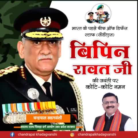 भारत के प्रथम CDS जनरल स्व• बिपिन रावत जी की प्रथम जयंती पर कोटि-कोटि नमन #चन्द्रपाल_खडगवंशी @cpkhadagvanshi