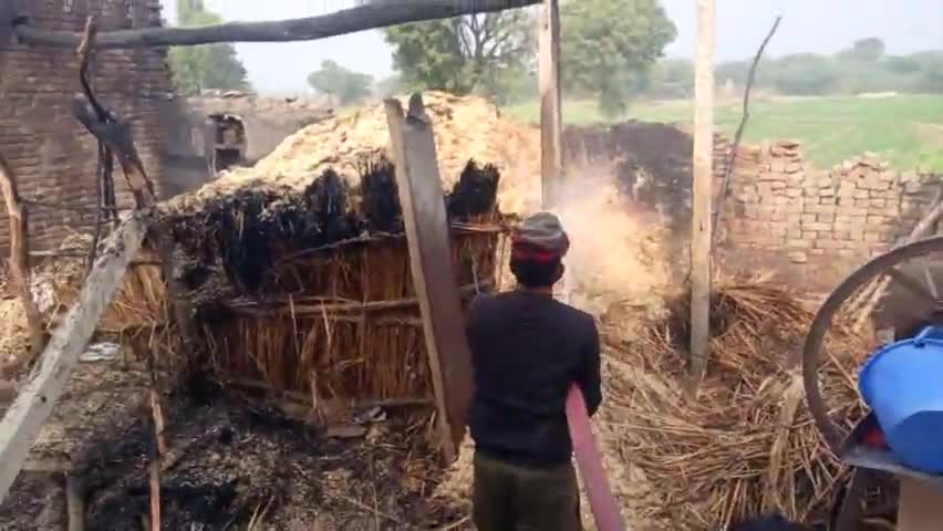 बयाना के गांव नगला रुपराम में अज्ञात कारणों से छप्परपोश में लगी आग , जल कर राख ।