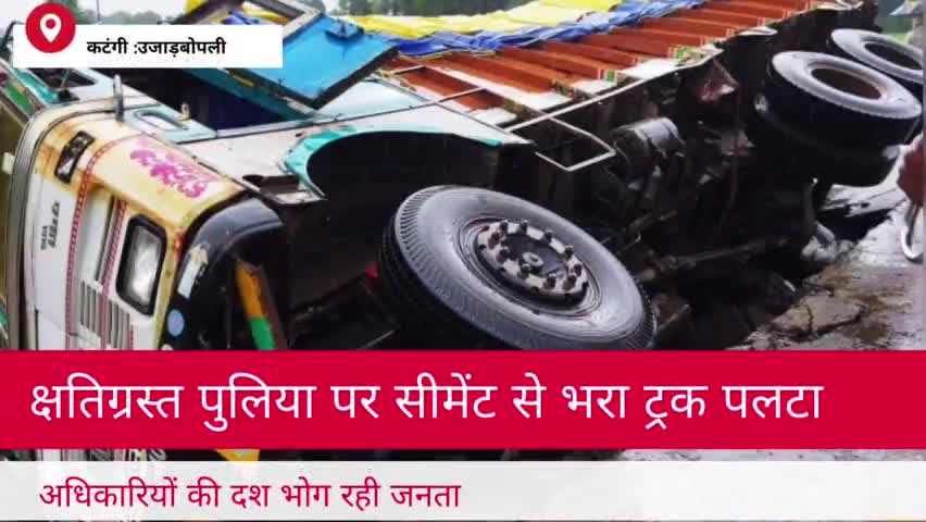 कटंगी : मंगलवार की सुबह 8:00 बजे लालबर्रा मार्ग पर मुंडीवारा व ग्राम उजाड़बोपली के बीच सीमेंट से भरा ट्रक क्षतिग्रस्त