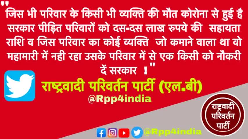 प्रत्येक ग़रीब परिवार जिसमे से किसी भी व्यक्ति की मौत कोरोना महामारी से हुई है सरकार सहायता के रुप मे दे 10-10 लाख रुपये