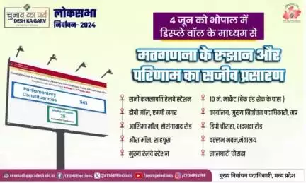 #𝐋𝐨𝐤𝐒𝐚𝐛𝐡𝐚𝐄𝐥𝐞𝐜𝐭𝐢𝐨𝐧𝐬𝟐𝟎𝟐𝟒 4 जून को भोपाल में डिस्प्ले वॉल के माध्यम से होगा मतगणना के रुझान और परिणाम का सजीव प्रसारण ➡️10 प्रमुख स्थानों पर लगेंगी डिस्प्ले वॉल