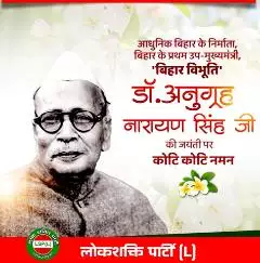 आधुनिक बिहार के निर्माता प्रथम उपमुख्यमंत्री, बिहार विभूति डॉ अनुग्रह नारायण सिंह जी जयंती पर उन्हें कोटि-कोटि नमन