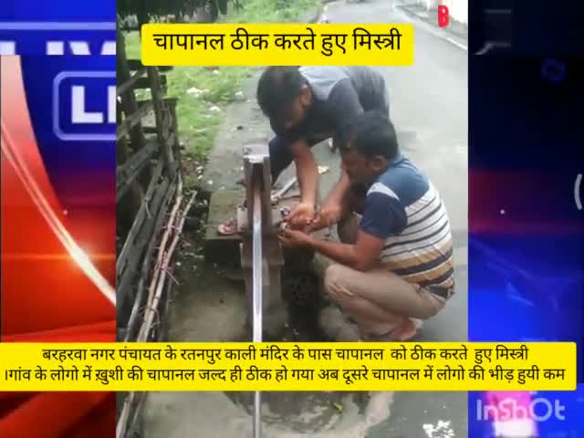 बरहरवा नगर पंचायत के रतनपुर काली मंदिर के पास चापानल ठीक करते हुए मिस्त्री,एक दिन पहले ही हुआ था ख़राब