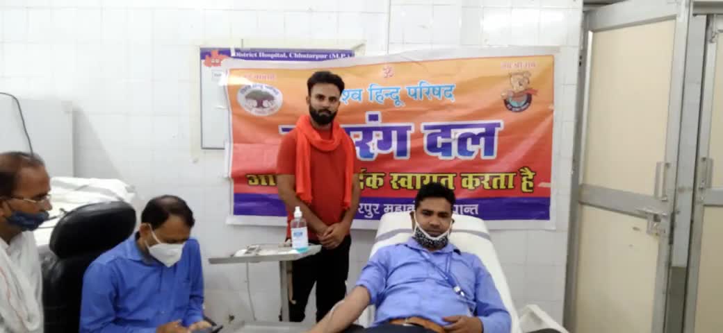 सीमा चतुर्वेदी उम्र 30 वर्ष के ऑपरेशन के लिए बजरंग दल के राहुल विश्वकर्मा जी द्वारा किया गया रक्तदान