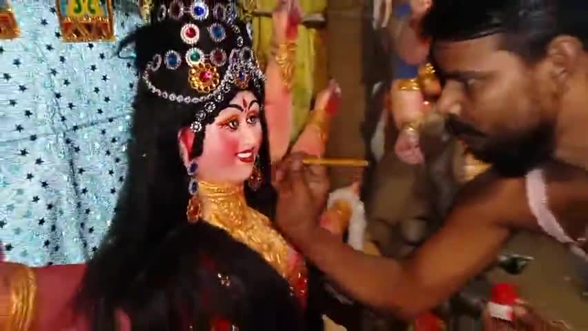 ग्राम चूल्ही में मां दुर्गा की प्रतिमा को कलाकार ने नए तरीके से बनाई मां दुर्गा की प्रतिमा