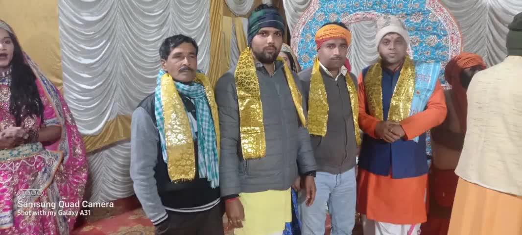 श्री रुद्र महायज्ञ सेवतापुर प्रथम दिन रासलीला शुरू होने से पहले भगवान श्री कृष्ण जी और राधा जी का पूजा अर्चन किया गया