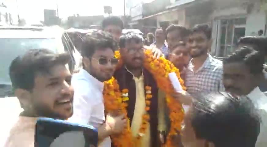 सिनेमा चौराहा हरदोई में अनुराग द्विवेदी अन्नू का हुआ 51 किलो का माला पहनाकर स्वागत