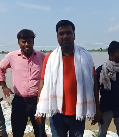 बाढ़ क्षेत्र के भर्मण के दौरान टन्डन पुर बांध पर