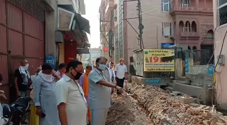मथुरा: विश्व़ बैंक द्वारा वृंदावन की गलियों में चल रहे कार्यों का पूर्व विधायक द्वारा किया गया निरीक्षण।