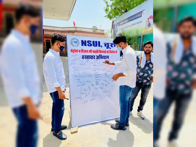 NSUI चूरू द्वारा पेट्रोल व डीजल की बढ़ी कीमतों के खिलाफ हस्ताक्षर अभियान। @asif570029