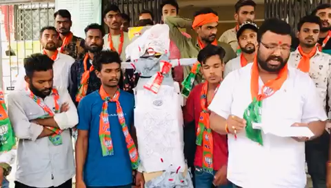 खानपुर ,27 जुलाई - राजस्थान प्रशासनिक सेवा में शिक्षामंत्री के लिए हुयी धांधली के खिलाफ युवामोर्चा प्रदेश उपाध्यक्ष विशाल पार्थ के नेतृत्व मयुवाओं ने किया प्रदर्शन