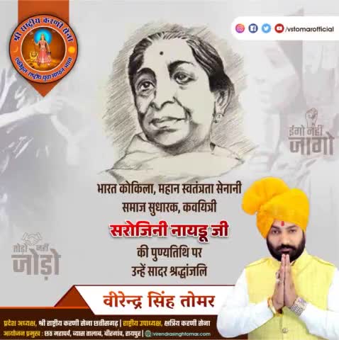 भारत की प्रथम महिला राज्यपाल, #भारत_कोकिला, स्वतंत्रता सेनानी, कवयित्री, समाज सुधारक #सरोजिनी_नायडू_जी की पुण्यतिथि पर उन्हें भावभीनी श्रद्धांजलि 💐🙏🏻🇮🇳 #SarojiniNaiduJi #SarojiniNaidu