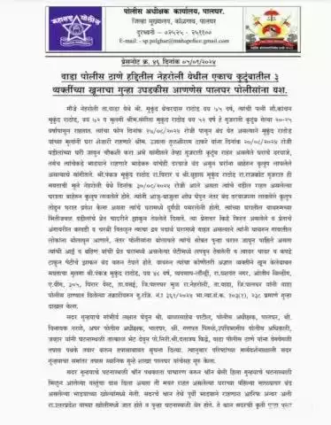 वाडा पोलिसांनी केला एकाच घरातील 03 व्यक्तींचा खुनाचा उलगडा.