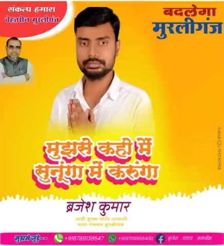 जब हम किसी कार्य को विश्वास के साथ करते है, तो हमारे कार्य करने की क्षमता दुगुनी हो जाती है। भावी मुख्य पार्षद प्रत्याशी नगर पंचायत मुरलीगंज श्री बृजेश कुमार जी!