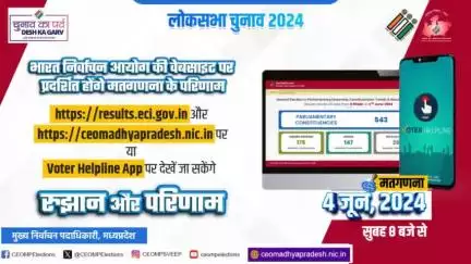 #𝐋𝐨𝐤𝐒𝐚𝐛𝐡𝐚𝐄𝐥𝐞𝐜𝐭𝐢𝐨𝐧𝐬𝟐𝟎𝟐𝟒 4 जून को मतगणना के परिणाम results.eci.gov.in , ceomadhyapradesh.nic.in और Voter Helpline App पर देखें जा सकेंगे।