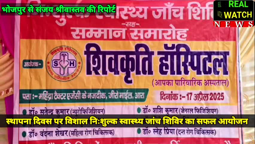 आरा से संजय श्रीवास्तव स्लग। स्थापना दिवस पर विशाल निःशुल्क स्वास्थ्य जांच शिविर का सफल आयोजन एंकर। आरा,शिवकृति हॉस्पिटल, जीरो माइल, आरा ने अपने स्थापना दिवस के अवसर पर 17 अप्रैल गुरुवार को एक भव्य निःशु
