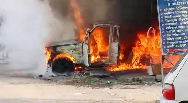 खड़ी गाड़ी में अचानक लगी भयंकर आग