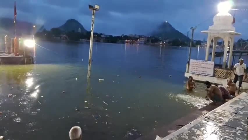 पुष्कर: तेज बारिश के बाद पुष्कर सरोवर के जलस्तर में हुई बढ़ोतरी, 37 फुट तक पहुंचा सरोवर का जलस्तर