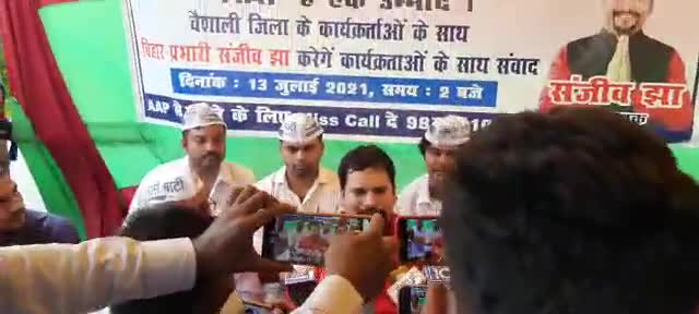 वैशाली मे प्रेस कॉन्फ्रेंस करते माननीय बुराड़ी (दिल्ली) विधायक सह बिहार प्रभारी संजीव झा साथ ही जी ।