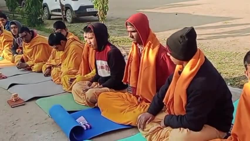 माण्डलगढ़: मकर संक्रांति पर वेद संस्थान बरूंदनी में बटुकों व अध्यापकों ने किया स्वस्ति वाचन पाठ सूर्य सूक्त पाठ व सूर्य नमस्कार