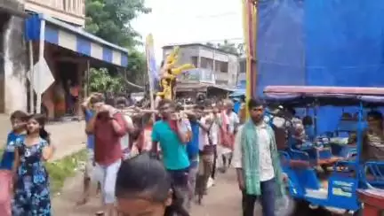 শনিবার সকাল ৯.৩০ মিনিটের সময় চকবিহারী মাঠপাড়া বারোযারী কমিটির উদ্যোগে,প্রথা মেনে তেহট্ট বাজারপাড়া পালবাড়ি থেকে দুর্গা প্রতিমা কাঁধে করে প্রায় দুই কিলোমিটার রাস্তা পায়ে হেটে,চকবিহারী বারোয়ারী দুর্গা মণ্ডপে নিয়ে যাওয়া হবে, দুর্গা প্রতিমা নিয়ে যাওয়া প্রোগ্রাম সকাল ৯.৩০ সময় শুরু হয়েছে, মন্ডপে পৌঁছাতে সময় লাগবে ১১.৩০, শনিবার এগারোটার সময় সেই দৃশ্য ধরা পড়লো আমাদের ক্যামেরায়।