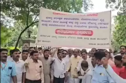 ಕರವೇ ಕಾರ್ಯಕರ್ತರು ನಿನ್ನೆ ಹಿಡಿಎ ಕಚೇರಿ ಮುಂದೆ ಕಣ್ಣಿ ಮಾರ್ಕೆಟ್ ಬಳಿಯ ತರಕಾರಿ ಕಟ್ಟಡದ ಮೇಲೆ ಕನ್ನಡ ನಾಮಪಲಕ ತೆಗೆಯಲಾಗಿದೆ ಎಂದು ಜಿಡಿಎ ಕಚೇರಿ ಮುಂದೆ ಪ್ರತಿಭಟನೆ ಮಾಡಿದ್ದರು,ಈ ಸಂದರ್ಭದಲ್ಲಿ ಜಿಡಿಎ ಕಮಿಷನರ್ ಹಾಗೂ PWD ಎಸ್ ಸಿ ಅವರ ಮುಖಕ್ಕೆ ಮಸಿ ಬಳಿದ ಆರೋಪ ಹಿನ್ನೆಲೆ ಇಂದು ಪ್ರತಿಭಟನೆ ಮಾಡಿದರು. ತಪ್ಪಿದಸ್ಥರ ವಿರುದ್ಧ ಕ್ರಮಕ್ಕೆ ಒತ್ತಾಯ ಮಾಡಿದರು.ಸೆ.19 ರಂದು ಪ್ರತಿಭಟನೆ ಮಾಡಲಾಗಿದೆ