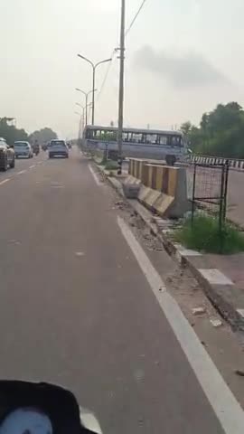 पॉलिटेक्निक फ्लाईओवर के ऊपर से बस टूटे डिवाइडेड के रास्ते से मारते हुए यातायात नियमों का वर्णन कर रहे बस वाले