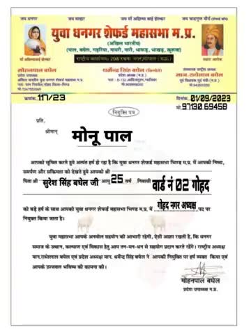 अखिल भारतीय धनगर शेफर्ड पाल महासभा गोहद में मोनू पाल जी को गोहद नगर अध्यक्ष बनाए जाने पर हार्दिक बधाई शुभकामनाये मोहन भैया टीम गोहद