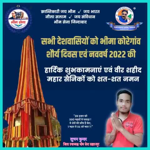 1 जनवरी शोर्य दिवस (विजय दिवस) और नववर्ष की हार्दिक भीमकामनाएँ। नया साल आपके जीवन मे सफलता-सुख-शांति और समृद्धि लेकर आये