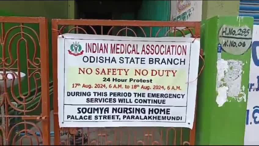 ଡାକ୍ତରୀ ଛାତ୍ରୀ ଙ୍କୁ ହତ୍ୟା ଘଟଣାରେ ସ୍ବାସ୍ଥ୍ୟ କର୍ମଚାରୀ ମାନଙ୍କ ସୁରକ୍ଷା ଦାବିରେ ଜିଲ୍ଲା ର ଅନେକ ବେସରକାରୀ ଚିକିତ୍ସାୟ ବନ୍ଦ ପଶ୍ଚିମବଙ୍ଗ ର ଡାକ୍ତରୀ ଛାତ୍ରୀ ଙ୍କୁ ହତ୍ୟା ଘଟଣାରେ ଗଜପତି ଜିଲ୍ଲା ର ବିଭିନ୍ନ ବେସରକାରୀ ସ୍ବାସ୍ଥ୍ୟ କେନ୍ଦ୍ର ରେ ତାଲା ପକାଇ ପ୍ରତିବାଦ କୁ ଓଲ୍ଲାଇଛନ୍ତି । ଇଣ୍ଡିଆନ ମେଡିକାଲ ଆସୋସିଏସନ୍ ର ଓଡ଼ିଶା ରାଜ୍ୟ ଶାଖା ର ଡ଼ାକରା ରେ ପାରଳାଖେମୁଣ୍ଡି ସଦରମହକୁମା ର ବିଭିନ୍ନ ବେସରକାରୀ କ୍ଳିନିକ ସମେତ ବିଭିନ୍ନ ବେସରକାରୀ ସ୍ବାସ୍ଥ୍ୟ କେନ୍ଦ୍ର କୁ ବନ୍ଦ କରି ପ୍ରତିବାଦ କରୁଛନ୍ତି । ଜିଲ୍ଲାର ପ୍ରାୟ ବେସରକାରୀ ଚିକିତ୍ସାଳୟ ଗୁଡ଼ିକ ବନ୍ଦ କରିବା