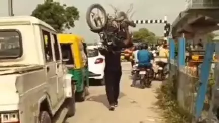 मोंठ थाना क्षेत्र के ग्राम टोड़ी के पास मोंठ-समथर मार्ग पर स्थित रेलवे क्रॉसिंग पर हाल ही में एक हैरतअंगेज नजारा देखने को मिला। पेशे से बॉडीबिल्डर प्रदीप ने अपनी बजाज प्लेटीना मोटरसाइकिल को कंधे पर उठाकर रेलवे पटरी पार कर दी। यह स्टंट मौके पर मौजूद लोगों को देखकर दंग कर देने वाला था और इसका वीडियो सोशल मीडिया पर सोमवार को शाम 5 बजे तेजी से वायरल हो गया।