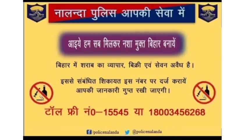 #नालंदा :-शराब पर रोक लगाने के लिए #राजगीर_थाना प्रभारी ने जारी किया है एक पोस्टर।