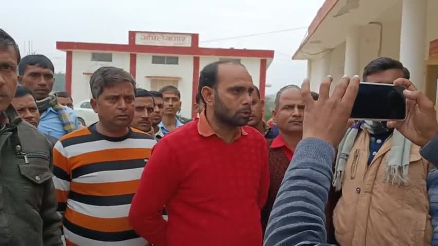 भारतीय मजदूर संघ का नारा लगाते हुए 108 102 एंबुलेंस कर्मचारी
