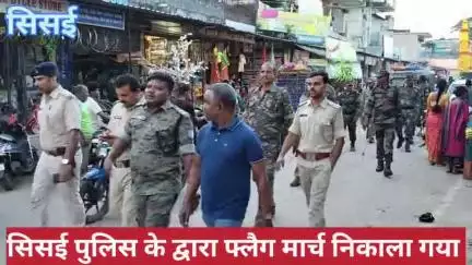 दुर्गा पूजा को लेकर सिसई पुलिस के द्वारा फ्लैग मार्च निकाला गया।