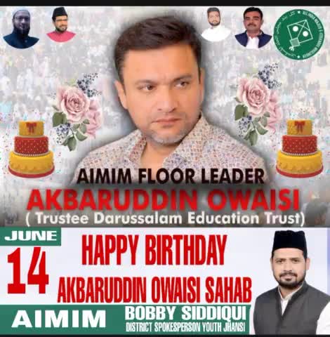HAPPY BIRTHDAY AKBARUDDIN OWAISI SAHAB 💐🎂🎂🎂🎂💐 बॉबी सिद्दीकी जिला प्रवक्ता यूथ AIMIM झाँसी