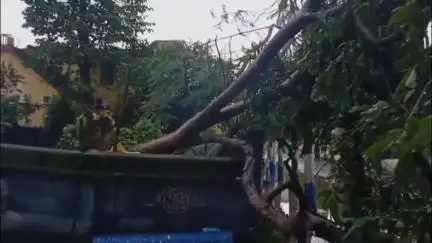 দক্ষিণ দিনাজপুর জেলার সদর শহর বালুরঘাটে প্রবল ঝড়-বৃষ্টিতে বড়সড় বিপত্তি। শনিবার দুপুর আড়াইটা নাগাদ বালুরঘাট পৌরসভার সামনে একটি পুরনো গাছ হঠাৎ ভেঙে পড়ে। ঘটনায় অল্পের জন্য বড় দুর্ঘটনা এড়ানো যায়।স্থানীয় সূত্রে জানা গিয়েছে, দুপুর দু’টো নাগাদ শহরে ঝড়-বৃষ্টি শুরু হয়। ঝোড়ো হাওয়া ও প্রবল বৃষ্টির মধ্যে আচমকা পৌরসভার সামনে দাঁড়িয়ে থাকা একটি পুরনো গাছ ভেঙে রাস্তার উপর এসে পড়ে। ঘটনাস্থল দিয়ে সে সময় কয়েকজন পথচারী এলাকায় ছিলেন ।