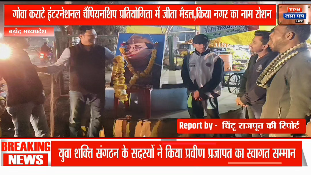 प्रवीण प्रजापत ने गोवा कराटे इंटरनेशनल चैंपियनशिप प्रतियोगिता में मेडल जीतने पर युवा शक्ति संगठन के युवाओं ने स्वागत किय