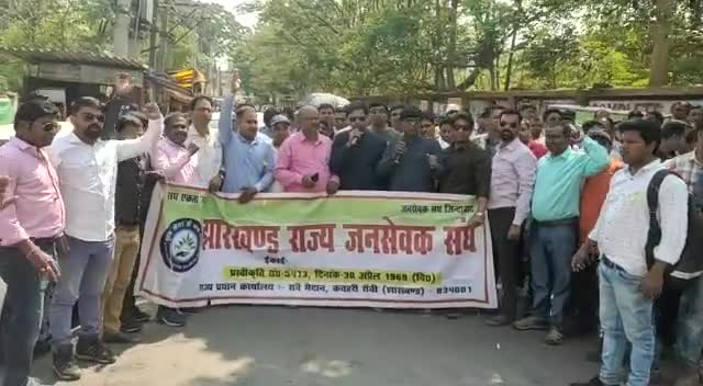भंडरा: कृषि मंत्री के आवास का घेराव करते। झारखंड राज्य जनसेवक संघ।
