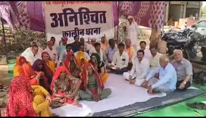 धरने पर बैठे लोग कर रहे इंतजार हमारी कब सुनेंगी सरकार न्यूज़:-- 35 दिनों से उपखंड मुख्यालय विराटनगर के सामने अनिश्चितकाल