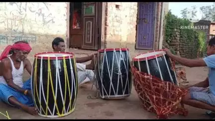 আড়শা: ঝাড়খণ্ড রাজ্যের বিভিন্ন দুর্গাপুজোতে থাকবে বাকিরা পুরুলিয়া জেলার বড়াম গ্রামে ঢাকিদেরে প্রস্তুতি