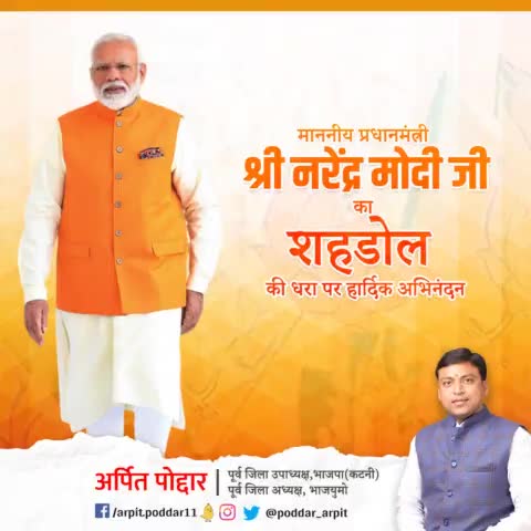 मध्यप्रदेश की पावन धरा शहडोल पधार रहे देश के यशस्वी प्रधानमंत्री माननीय श्री @narendramodi जी का हार्दिक स्वागत, वंदन एवं अभिनंदन💐💐